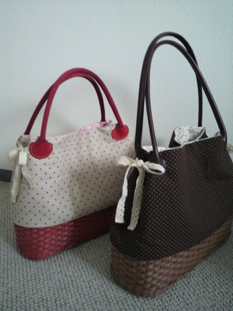 バック完成 クラフトカゴと綿麻のコンビのバックを作りました。