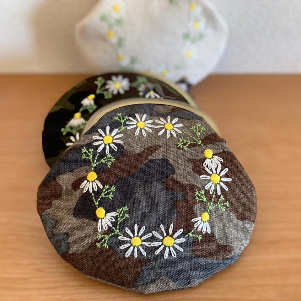花言葉は「逆境で生まれる力」カモミール刺繍がま口ポーチ #minne https://minne.com/items/21335123