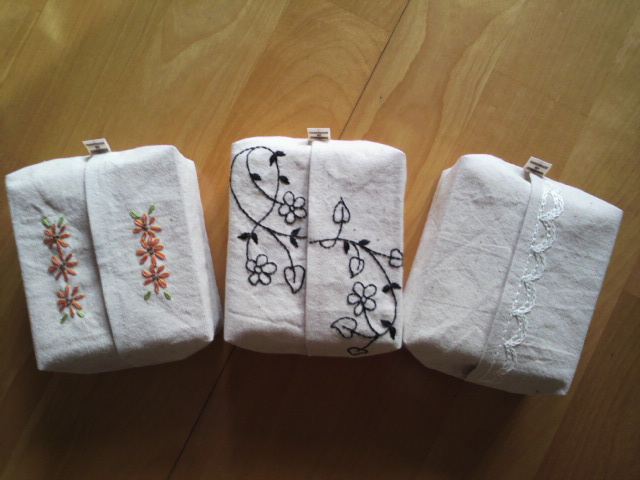 半分サイズのティッシュカバー 刺繍バージョンが出来ました。